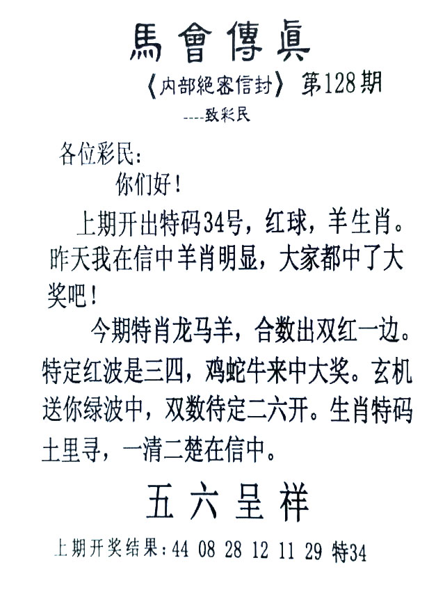 128期:首发推荐:≮馬會傳眞≯→(香港正版)