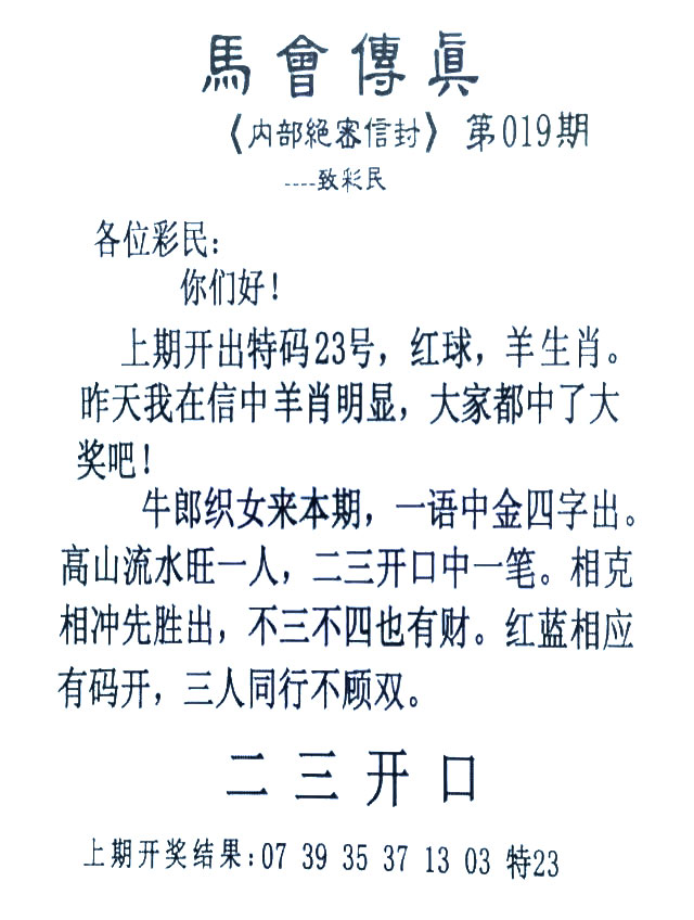 019期:首发推荐:≮馬會傳眞≯→(香港正版)
