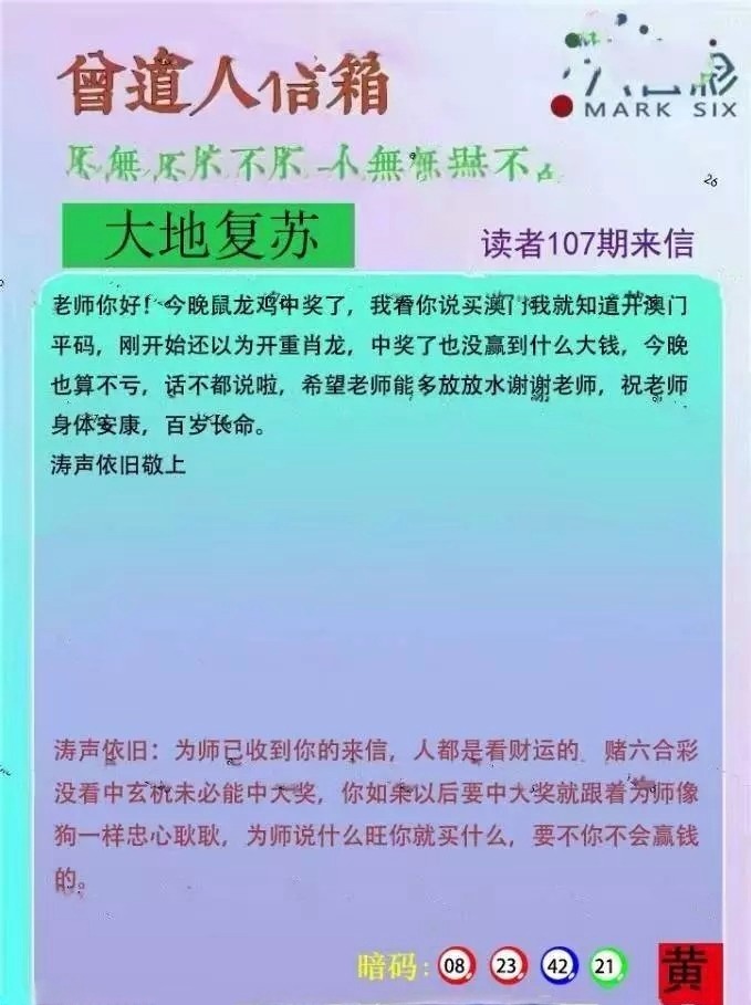 虽然不中,但蓝信还是有料的。这期重点是旺肖鼠龙狗和金肖鸡猴(财运)。